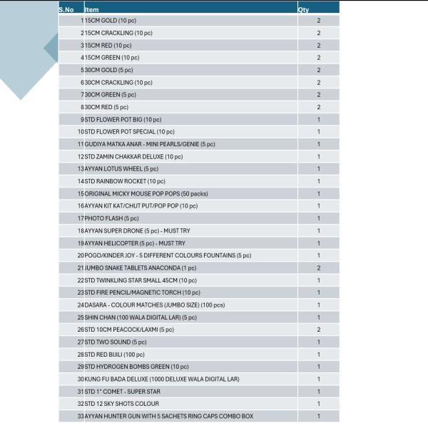 | STD ZAMIN CHAKKAR DELUXE (10 pc) | 1 |